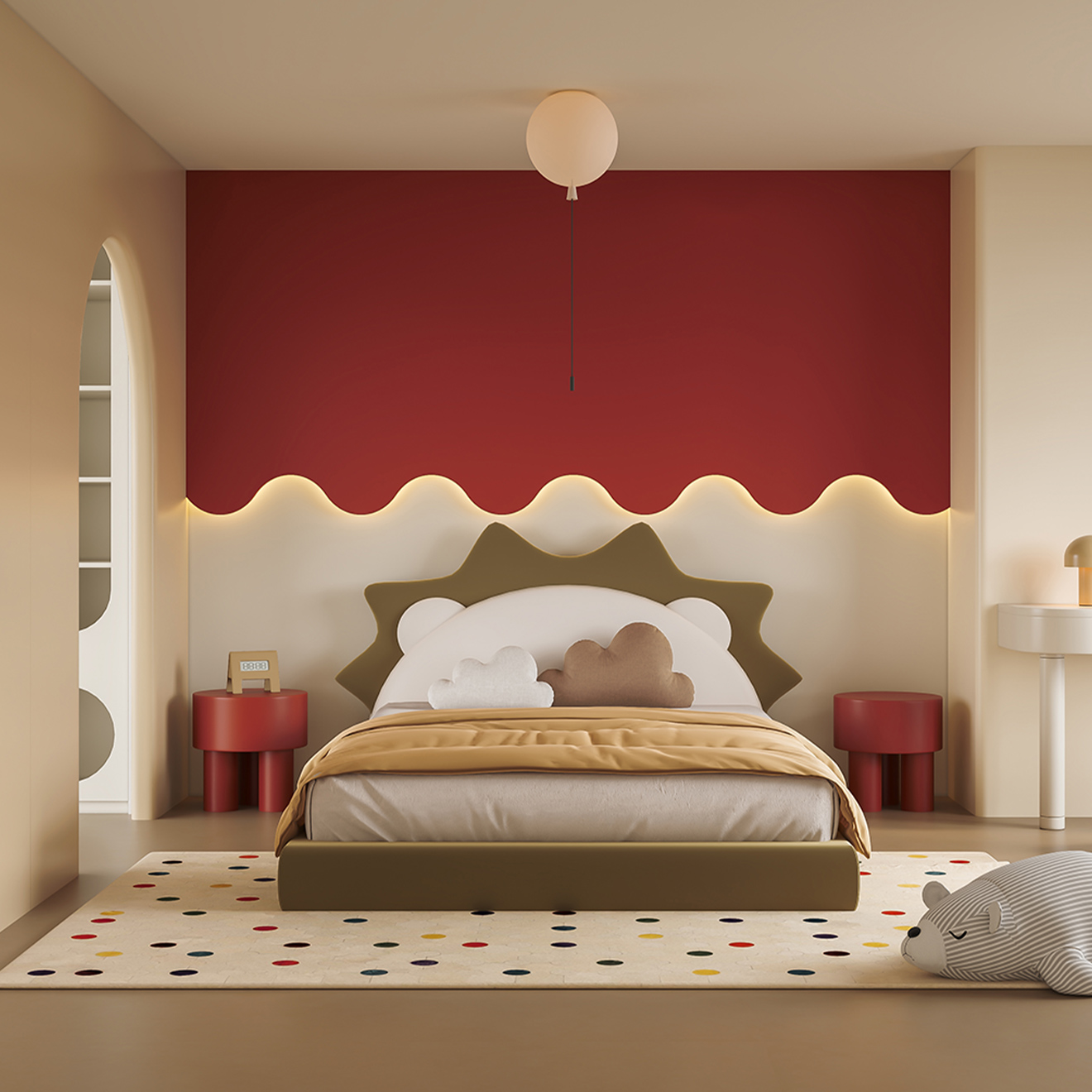 從不被標簽和定義束縛,藝術與風格是生活的主旋律,家是揮灑靈感的游樂場。深邃的黑色基調如立體畫布,現(xiàn)代主義的幾何布局彰顯對設計的熱愛,一抹“元力紅”如指揮家般引領三原色的大膽運用,碰撞融合間,奏響趣意盎然的生活交響樂。