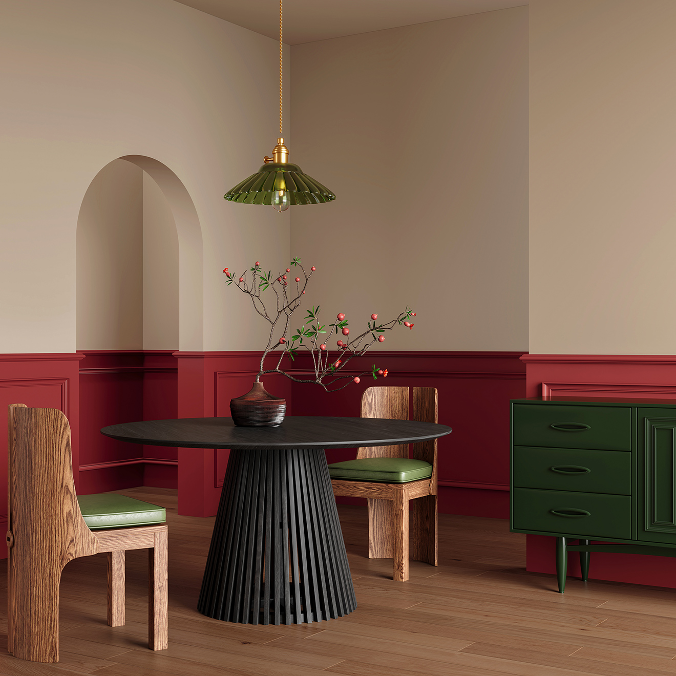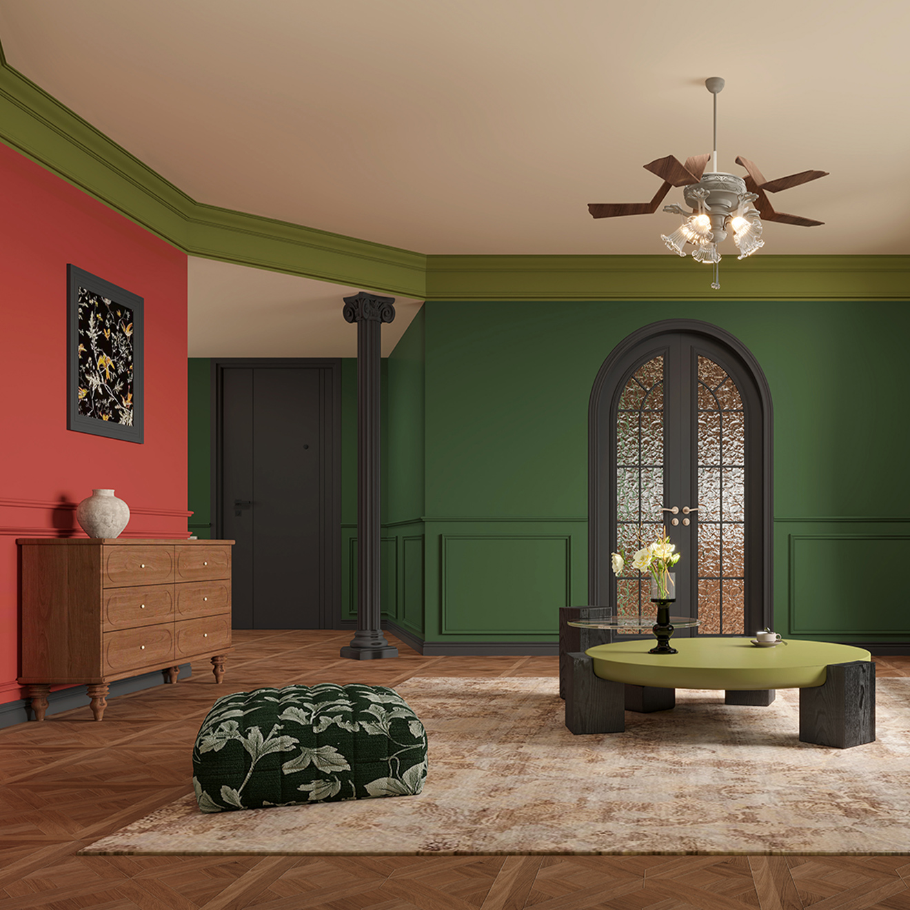 在廣闊的自然中保持自由精神,哺育永遠旺盛的好奇心。深深淺淺的綠意交錯,打造宛如神秘雨林的野趣空間,精致復古的細節(jié)蘊藏生活意趣,一抹“元力紅”如隱秘在深林中的寶藏,等待著充滿勇氣的探險家們去發(fā)掘和探索。