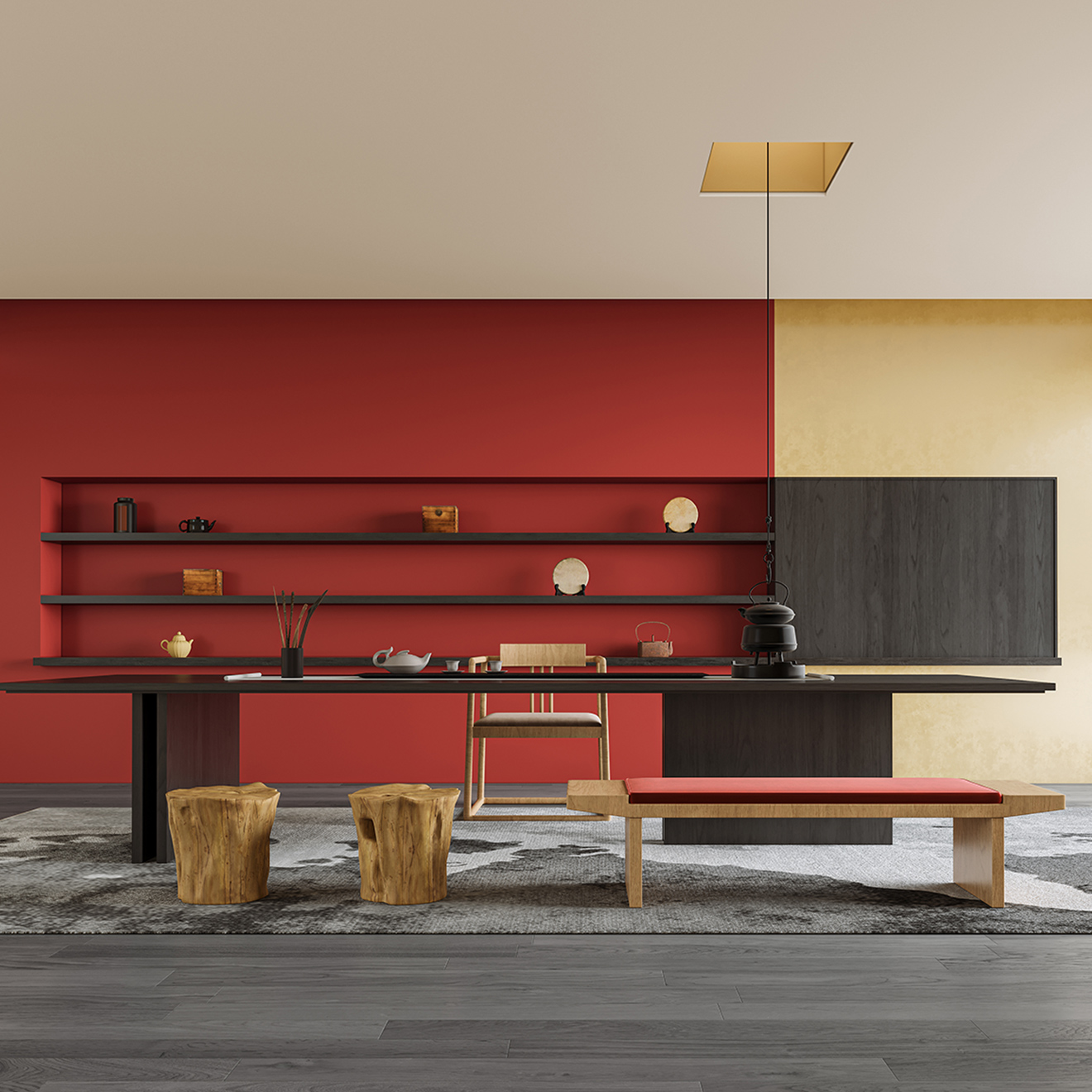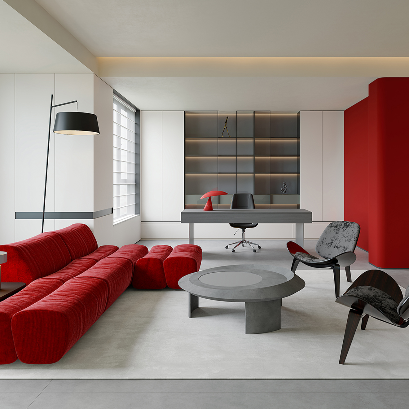習慣在理性的留白間獲得片刻寧靜,以內心深處的澎湃思緒平衡生活的尺度。純凈而克制的灰度世界中,利落線條描繪出思想的輪廓,一抹“元力紅”如劃破星空的火把,讓智慧在靜謐的空間中閃爍著耀眼光芒。